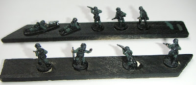 Muni de 3 nouvelles couleurs Vallejo (VP920 German Uniform, VP866 Grey Green & VP830 German Fieldgrey WWII) et d'une bombe de sous-couche noire de Tamyia, j'ai déjà ébarbé un peloton entier, ainsi que les premiers éléments du second peloton. J'espère donc pouvoir finir d'ébarber toute la Kompanie avant Samedi 30, de façon à pouvoir les sous-coucher, puis de me mettre à la peinture dès le tout début de Juin.
